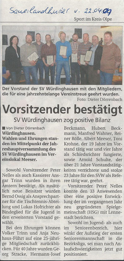 Der Vorstand, Abteilungsleiter sowie die HSG Lennestadt-Würdinghausen berichteten über ein aktives und erfolgreiches Jahr. Die Versammlung dankte dem Vorstandsteam für seine engagierte Arbeit und erteilte einstimmig die Entlastung.
