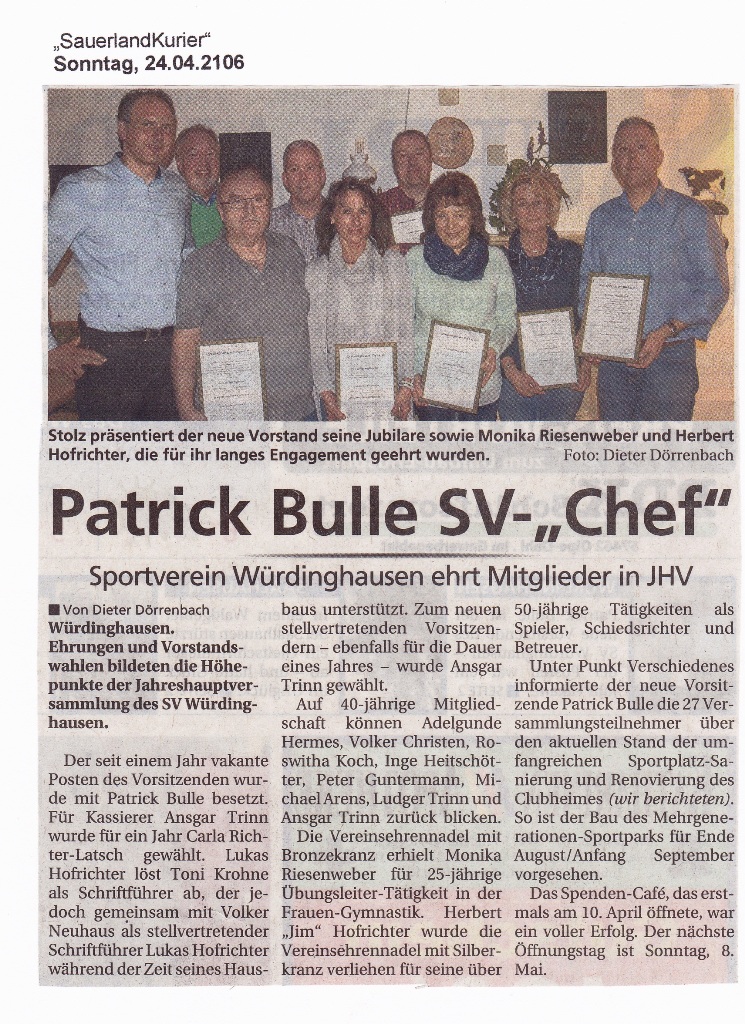 Der Vorstand, Abteilungsleiter sowie die HSG Lennestadt-Würdinghausen berichteten über ein aktives und erfolgreiches Jahr. Die Versammlung dankte dem Vorstandsteam für seine engagierte Arbeit und erteilte einstimmig die Entlastung.