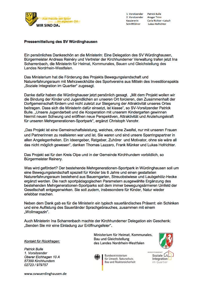 Der Vorstand, Abteilungsleiter sowie die HSG Lennestadt-Würdinghausen berichteten über ein aktives und erfolgreiches Jahr. Die Versammlung dankte dem Vorstandsteam für seine engagierte Arbeit und erteilte einstimmig die Entlastung.