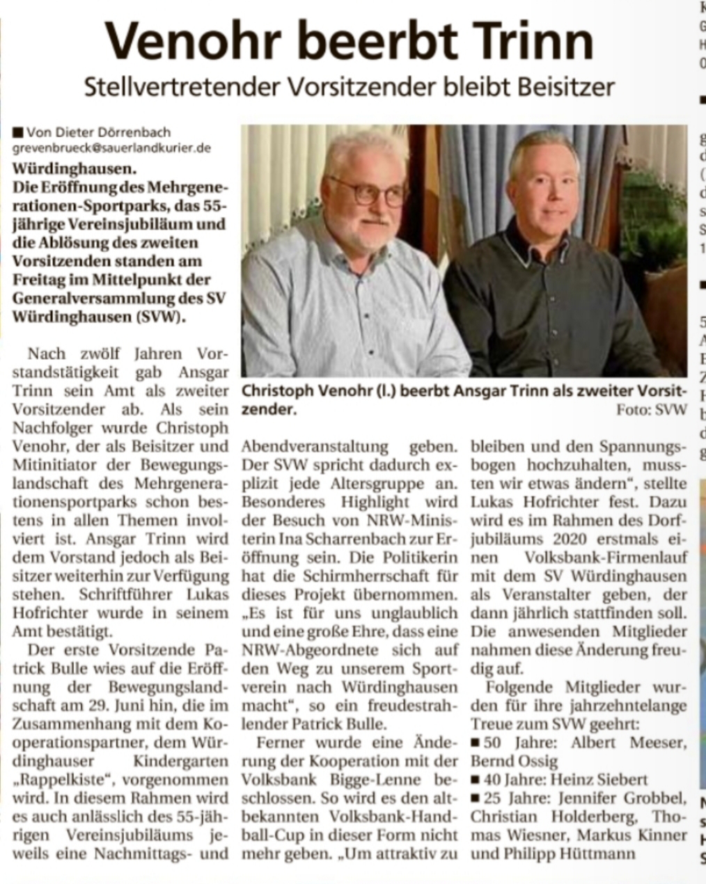 Zur Generalversammlung des Sportvereins Würdinghausen 1964 e.V. kamen zahlreiche Mitglieder zusammen, um gemeinsam auf das Geschäftsjahr 2024 zurückzublicken und wichtige Weichen für die Zukunft zu stellen.
